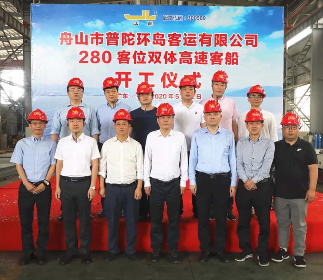 舟山普陀交通投資發(fā)展集團(tuán)有限公司黨委書記、董事長(zhǎng)徐舟,黨委副書記張運(yùn),舟山市普陀環(huán)島客運(yùn)有限公司總經(jīng)理樂(lè)五益,江龍船艇董事長(zhǎng)晏志清、中山分公司總經(jīng)理譚永燦等出席開(kāi)工儀式。