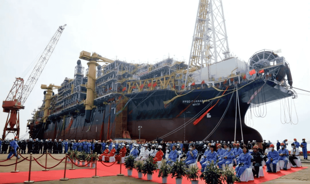 8月12日,中國(guó)船舶大船集團(tuán)舉行為日本三井海洋開(kāi)發(fā)公司(MODEC)改裝的Guanabara MV31浮式生產(chǎn)儲(chǔ)卸油船(FPSO)交船儀式。