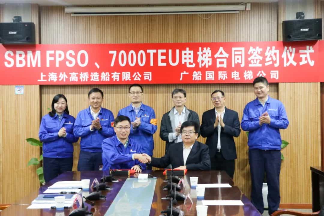 10月21日,中國船舶集團旗下廣船國際電梯機電設備有限公司攜手中國船舶集團上海外高橋造船有限公司在上海簽訂了13臺套船用電梯銷售合同。