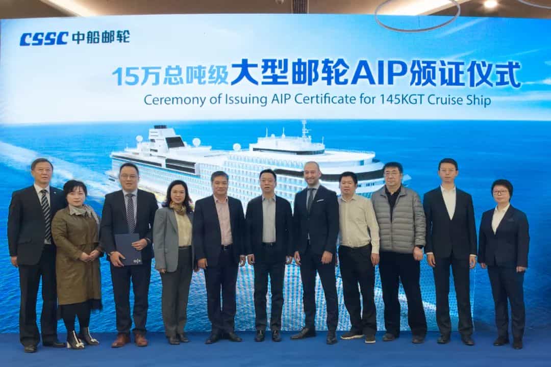 12月9日,中國船舶集團有限公司旗下中船郵輪科技發(fā)展有限公司自主研發(fā)設(shè)計的15萬噸級大型郵輪獲得意大利船級社(RINA)原則性認可(AIP)證書。