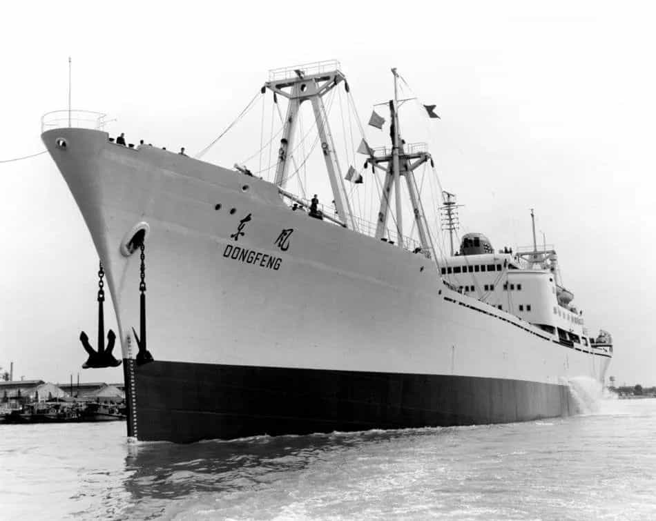 1965年12月31日,中國(guó)第一艘萬噸級(jí)遠(yuǎn)洋貨船“東風(fēng)”號(hào)在江南造船廠建成交付。她是中國(guó)自行設(shè)計(jì),材料、設(shè)備基本立足國(guó)內(nèi)生產(chǎn)制造的第一艘萬噸級(jí)遠(yuǎn)洋貨船,集中反映了當(dāng)時(shí)中國(guó)船舶設(shè)計(jì)、制造水平以及船舶配套生產(chǎn)能力。