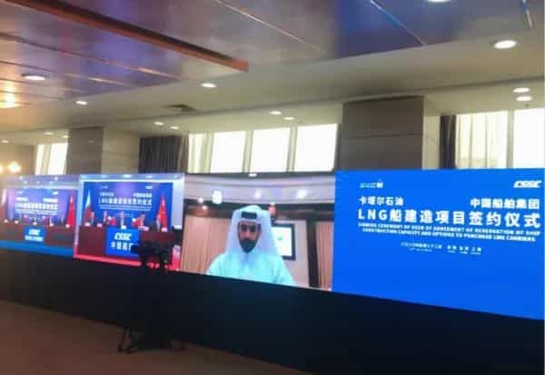 4月22日下午,中國(guó)船舶集團(tuán)有限公司與卡塔爾石油公司通過視頻連線,將中國(guó)北京、上海和卡塔爾多哈三地連成一體。雙方代表以云簽約的方式,正式簽訂了總金額超200億元人民幣的“卡塔爾石油——中國(guó)船舶集團(tuán)液化天然氣(LNG)船建造項(xiàng)目”。這也標(biāo)志著中國(guó)船舶集團(tuán)旗下滬東中華造船(集團(tuán))有限公司獲得了這份中國(guó)迄今最大造船出口合同,開創(chuàng)了中國(guó)LNG船建造項(xiàng)目的新紀(jì)元。
