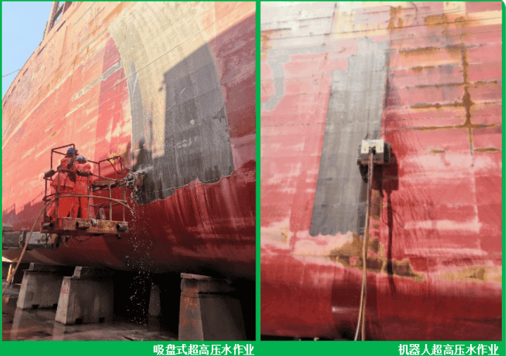目前,威海金陵船廠全力推進(jìn)綠色修船、科技修船。4月29日,在進(jìn)塢修理的“BERGE HAKODATE”輪上首次使用吸盤(pán)和機(jī)器人進(jìn)行外板滿扒油漆作業(yè)。繼本月中旬首次采用超高壓水對(duì)塢修船舶進(jìn)行外板除銹作業(yè)后,威海金陵船廠本次利用吸盤(pán)和機(jī)器人2500公斤的水壓對(duì)外板原始油漆及生銹腐蝕部位進(jìn)行清潔處理,不僅滿足環(huán)保要求,而且大幅提高生產(chǎn)效率。今后將在水回收、處理、更大范圍推廣應(yīng)用等事項(xiàng)上進(jìn)行研究實(shí)施。