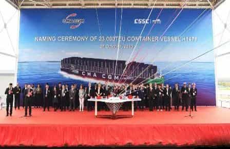 作為法國達(dá)飛輪船的聯(lián)合賣方,中國船舶集團(tuán)旗下江南造船和中國船舶工業(yè)貿(mào)易有限公司建造的23000TEU超大型雙燃料集裝箱船“達(dá)飛香榭·麗舍(CMA CGM CHAMPS ELYSEES)”號(hào)于10月27日正式命名交付。