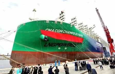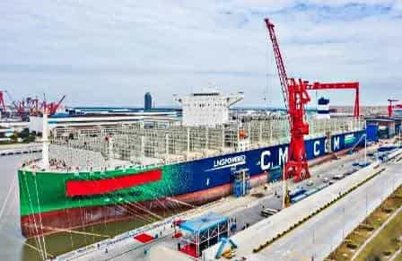 首艘全球最大雙燃料集裝箱船!江南造船正式交付