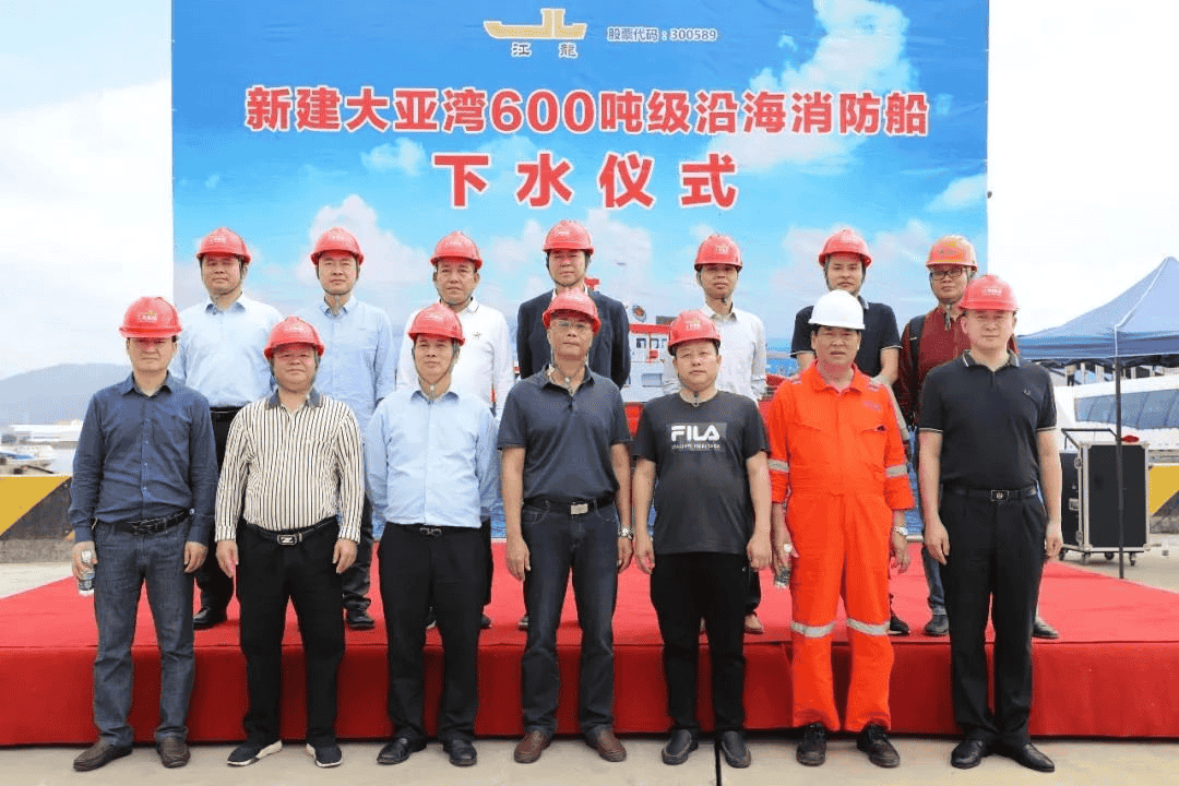 江龍船艇承建的惠州大亞灣600噸級(jí)沿海消防船“惠灣消1”號(hào)順利下水