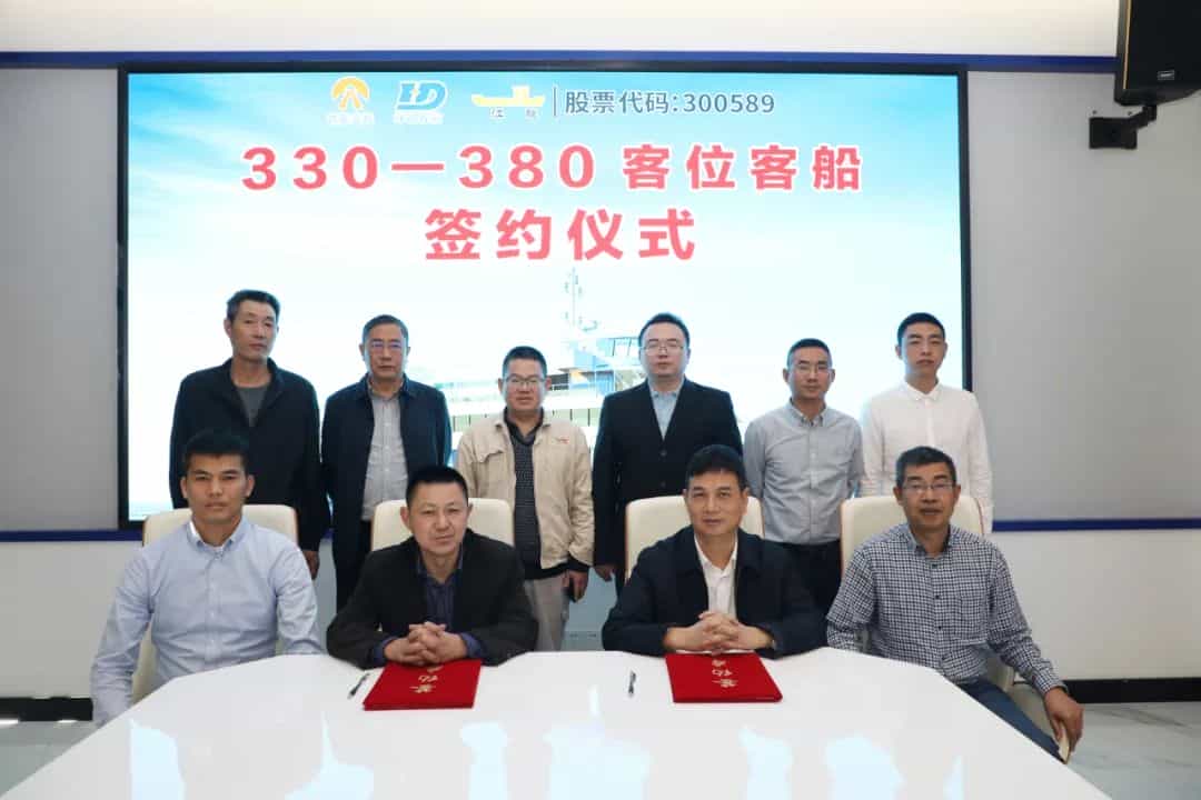 繼普陀環(huán)島客運(yùn)“普陀祥云”號(hào)順利下水之際,江龍?jiān)俣扰c舟山簽訂一艘330—380客位鋼鋁豪華客船建造合同。