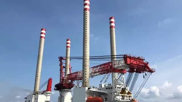 “振江”號(hào)為振江股份子公司尚和海工所屬,是當(dāng)時(shí)國(guó)內(nèi)首座1200噸自行自升式風(fēng)電安裝平臺(tái),可獨(dú)立完成6MW、8MW級(jí)風(fēng)機(jī)的安裝和其他水上工程施工的起重、打樁、吊裝和運(yùn)輸?shù)茸鳂I(yè)。