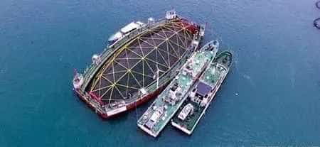 據(jù)廣州國際海事展了解,“振漁1號”呈橄欖形,總長60米,型寬30米,養(yǎng)殖水體達(dá)13000萬立方米。主要由浮體結(jié)構(gòu)、養(yǎng)殖框架、旋轉(zhuǎn)機(jī)構(gòu)三部分組成,可以將養(yǎng)殖區(qū)域向深海、遠(yuǎn)海延伸,一方面解決了近岸養(yǎng)殖帶來的生態(tài)壓力,另一方面也解決了養(yǎng)殖海域空間不足、養(yǎng)殖裝備抗風(fēng)浪能力差等問題。
