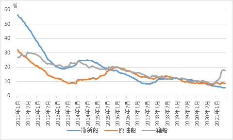主要船型手持訂單占船隊(duì)運(yùn)力比例