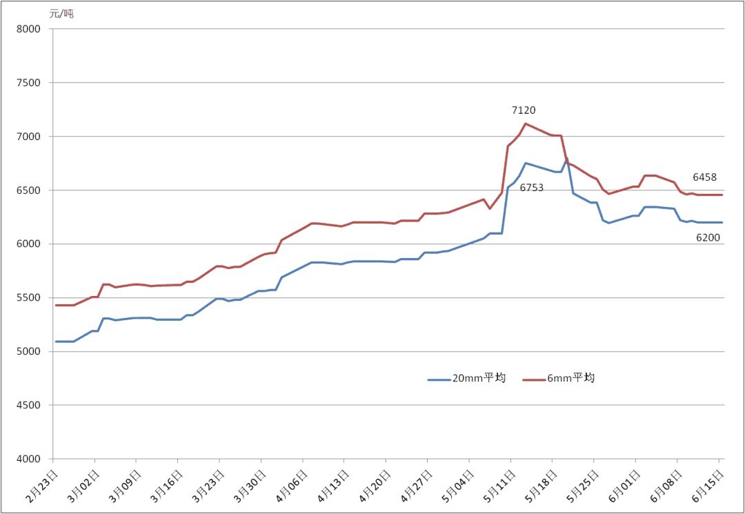 2020年11月份以來(lái),受進(jìn)口鐵礦石價(jià)格快速上漲等因素影響,國(guó)內(nèi)造船板價(jià)格大幅上漲52.1%。截至2021年5月14日,國(guó)內(nèi)6mm造船板和20mm造船板均價(jià)分別達(dá)到7136元/噸和6753元/噸,創(chuàng)下近十年新高,給行業(yè)發(fā)展帶來(lái)重大影響。