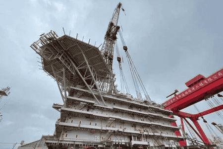 一是體量大,整個(gè)上層建筑長60米、寬15米,面積相當(dāng)于2個(gè)標(biāo)準(zhǔn)籃球場;總高度達(dá)到52米,相當(dāng)于17層樓高;重量近2800噸,較1號(hào)、2號(hào)船分別增加了300噸和460噸,成為中國第一“上層建筑”。