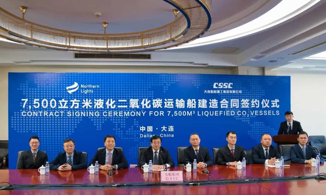 近日,中國船舶集團(tuán)有限公司旗下大連船舶重工集團(tuán)有限公司與挪威北極光公司成功簽訂2艘7500立方米液化二氧化碳運(yùn)輸船建造合同。