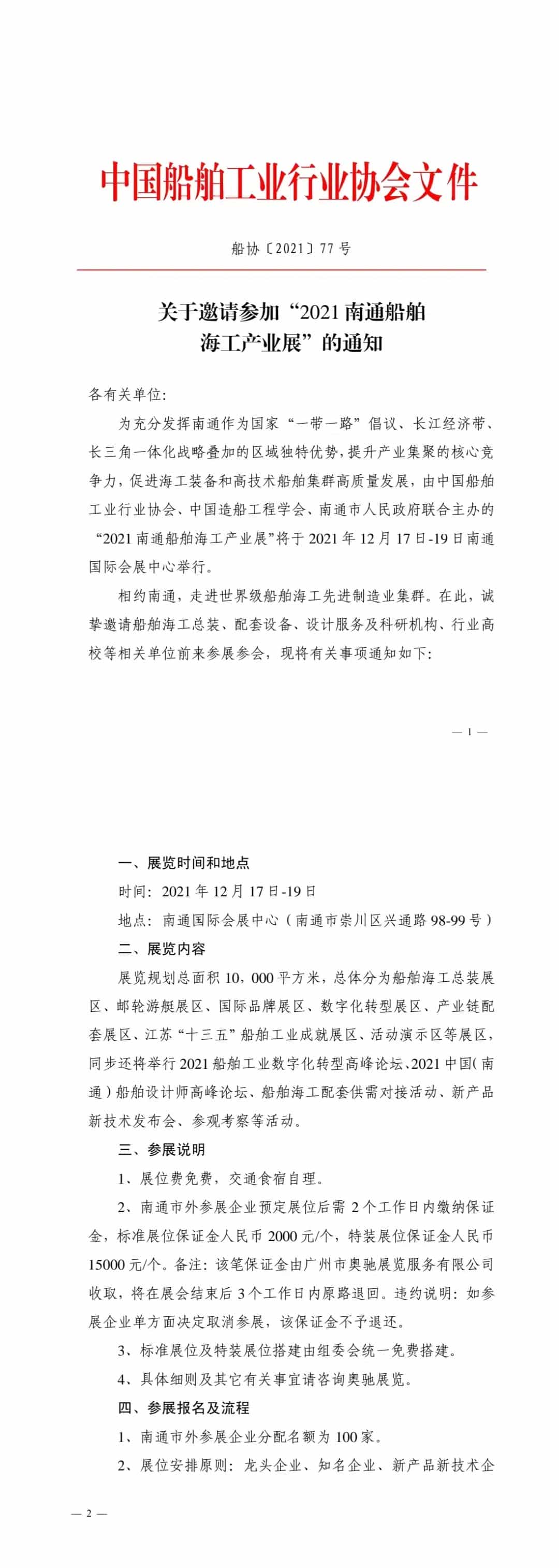 2021南通船舶海工產(chǎn)業(yè)展將于12月17日-19日在南通國際會展中心召開。