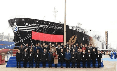 12月28日,由中國船舶集團旗下中船貿易和江南造船作為聯(lián)合賣方,為交銀租賃和山東海洋集團下屬太平洋氣體船公司(Pacific Gas)建造的全球最大艙容、世界首制采用B型艙的99000立方超大型乙烷運輸船(VLEC)“PACIFIC INEOS BELSTAFF”正式命名交付。