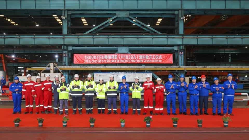 在15000TEU集裝箱船“達飛 阿多尼斯”號命名儀式上,船東致辭表示,中法船海巨頭將盡快開展更多合作,深化合作伙伴關系。僅四天后,13000TEU雙燃料集裝箱船項目首船燃料艙開建,意味著該項目全面啟動,滬東中華將為世界雙燃料集裝箱船“家族”增添新成員。