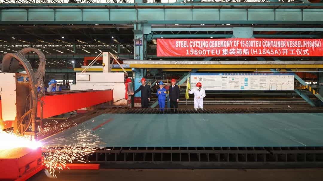 滬東中華 | 一天實現(xiàn)三型箱船交船開工三大節(jié)點