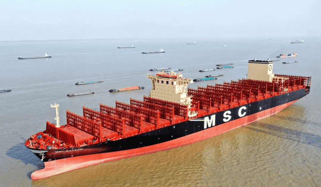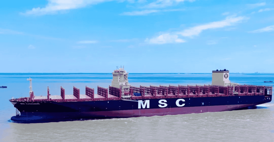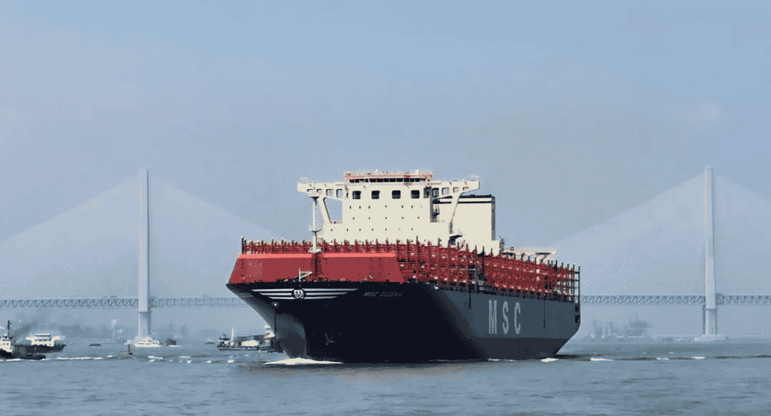 近日,由江蘇揚子江船業(yè)集團公司為SEASPAN公司建造的,第五艘12200TEU超大型集裝箱船--“MSC CASSANDRE”號離開船廠碼頭,開啟首航。