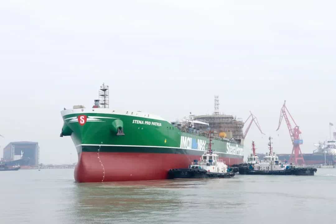 該船是廣船國際有限公司自主研發(fā)建造的,4.99萬噸甲醇雙燃料化學(xué)品/成品油船首制船“STENA PRO PATRIA”號(hào),配備了世界領(lǐng)先的甲醇雙燃料驅(qū)動(dòng)系統(tǒng),最高可減少75%的碳排放、15%的氮排放和99%的硫及顆粒物排放,將為全球減排貢獻(xiàn)中國船舶力量。
