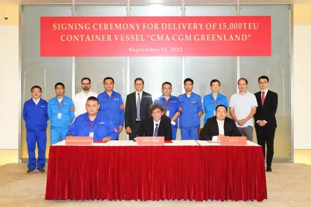 日前,江南造船與中國船舶工業(yè)貿(mào)易有限公司,為法國達(dá)飛海運(yùn)集團(tuán)打造的15000TEU雙燃料集裝箱船H2658,正式簽字交付。