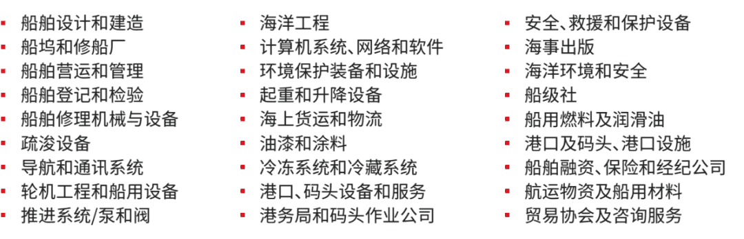 展會設(shè)船企展區(qū)、國際展區(qū)、船用設(shè)備及先進(jìn)材料展區(qū)、船舶通導(dǎo)展區(qū)、海洋牧場展區(qū)、海上風(fēng)電展區(qū)、港口及航運服務(wù)展區(qū)、郵輪產(chǎn)業(yè)展區(qū)、郵輪(客船)內(nèi)裝展區(qū),攜手船舶人乘風(fēng)破浪,邁向高質(zhì)量發(fā)展!