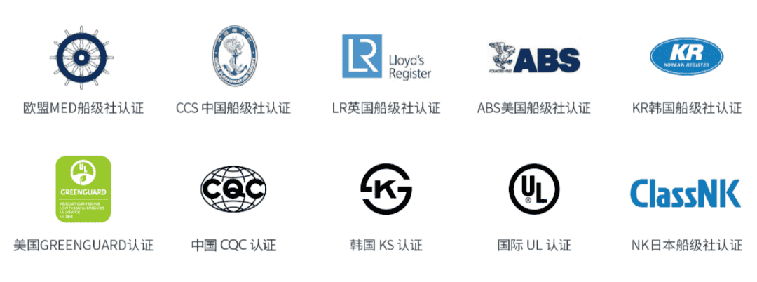 目前,贏勝船用材料先后通過CCS、ABS、KR、LR、MED、NK等船級社認(rèn)證及中船725所、中船702所、海醫(yī)所、遠(yuǎn)東防火中心等權(quán)威檢測機(jī)構(gòu)的相關(guān)檢測。