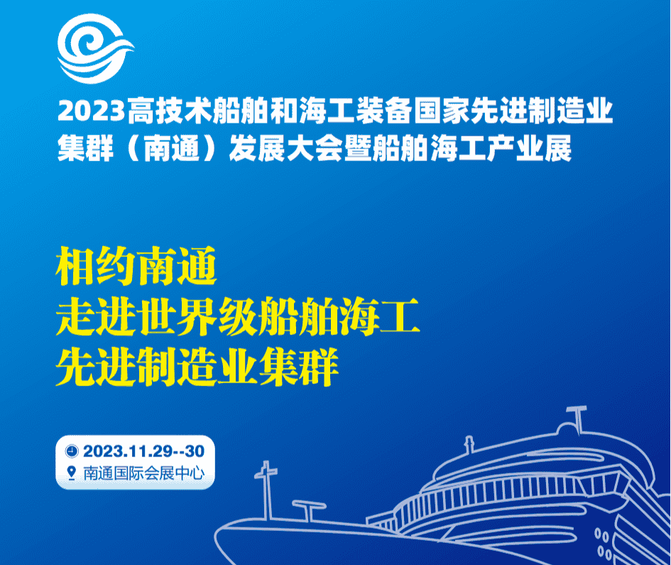 聚鏈成群,向“新”而行。11月29日-30日,“2023高技術(shù)船舶和海工裝備國家先進制造業(yè)集群(南通)發(fā)展大會暨船舶海工產(chǎn)業(yè)展”,將在南通國際會展中心隆重召開。